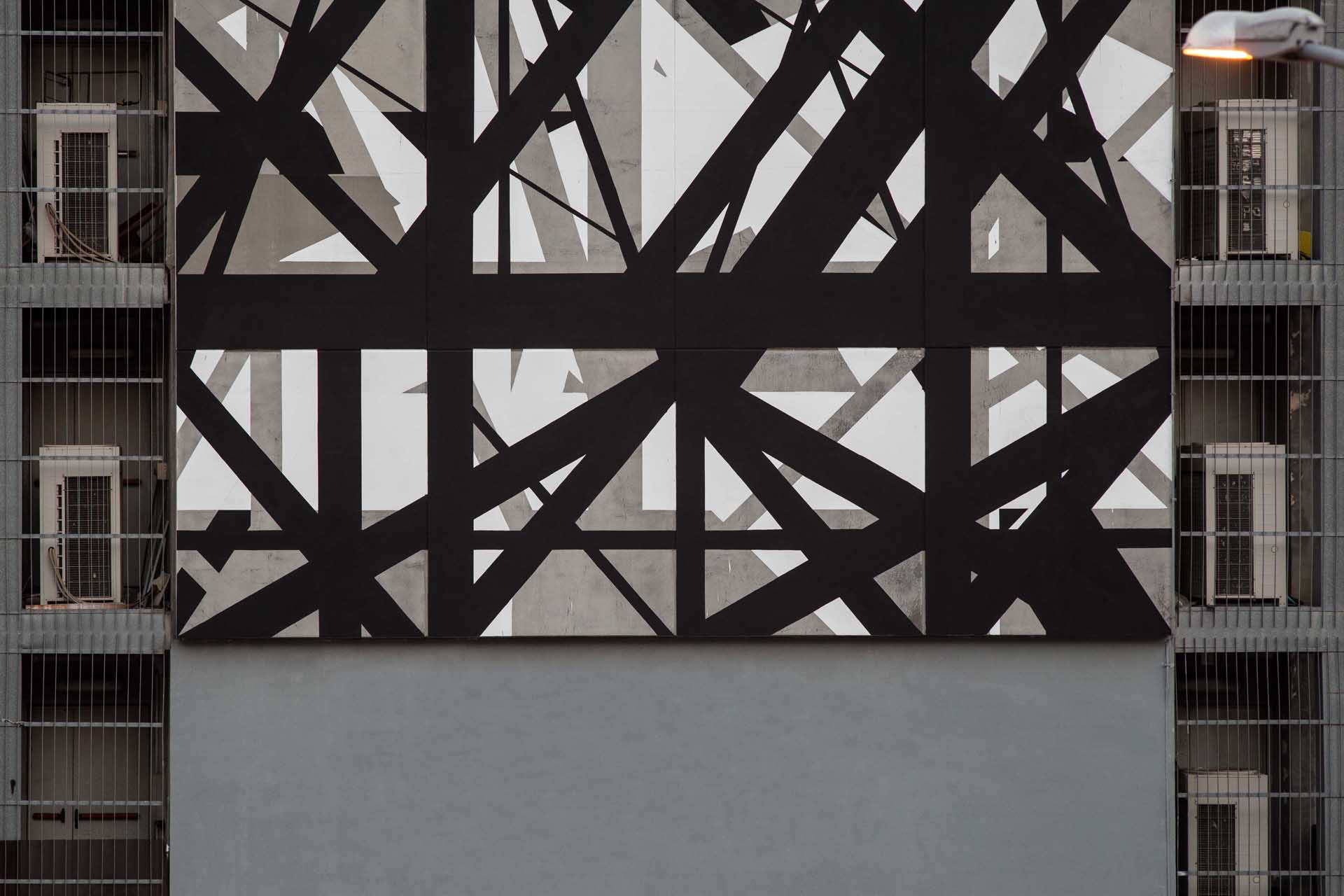 L’immaginario rappresentato da 108, Alberonero, Giorgio Bartocci, Clemens Behr, Ciredz, Jeroen Erosie, Graphic Surgery, Sbagliato, Sten Lex e Tellas, rimanda a scenari periferici e postindustriali, sposta l’attenzione su elementi naturali, abitudinari e spirituali, avanzando con la potenza dei movimenti avanguardisti della storia moderna. Le trame rappresentate dialogano con le geometrie del paesaggio urbano. L’opera avvolge la struttura e diventa essa stessa architettura.