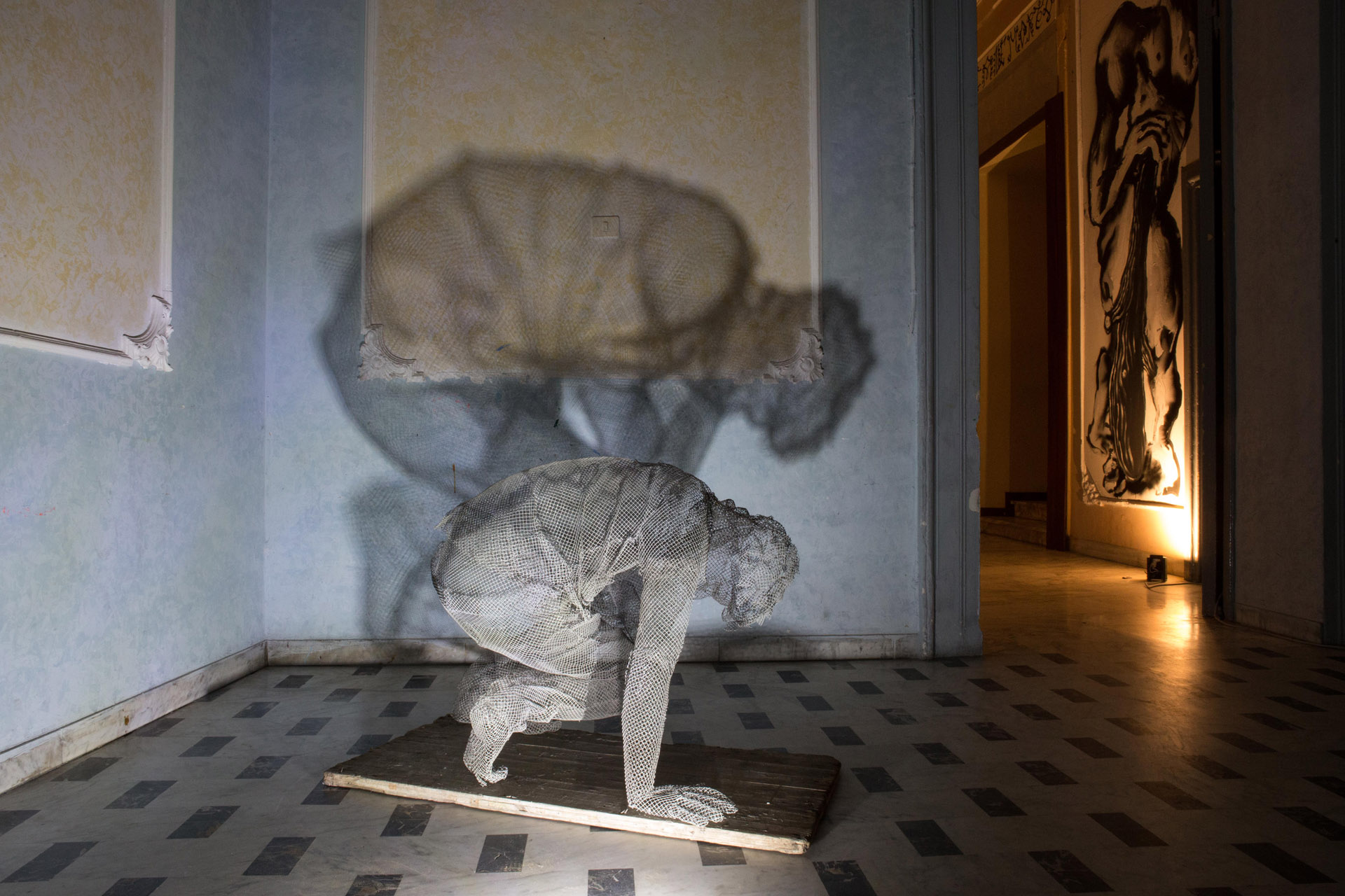 Dai resti, dall’assenza, gli artisti dialogano tra loro e con le memore del palazzo, per creare uno “spazio altro”, dell’interno, occupato dalla visione che prende forma sotto la spinta di un pensiero e diviene sensibile.